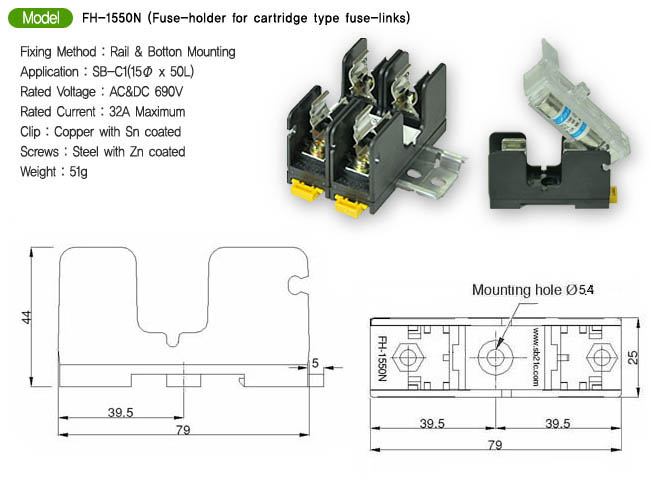 Model : FH-1550N (Fuse-holder for cartridge type fuse-links)