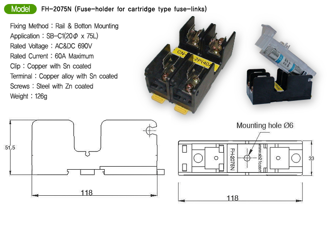 Model : FH-2075N (Fuse-holder for cartridge type fuse-links)